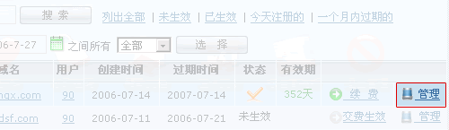 2、查看您所有的邮局产品列表,请选择您要管理的邮局的[管理]链接