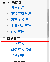 1、登陆用户控制中心,选择“网上汇入